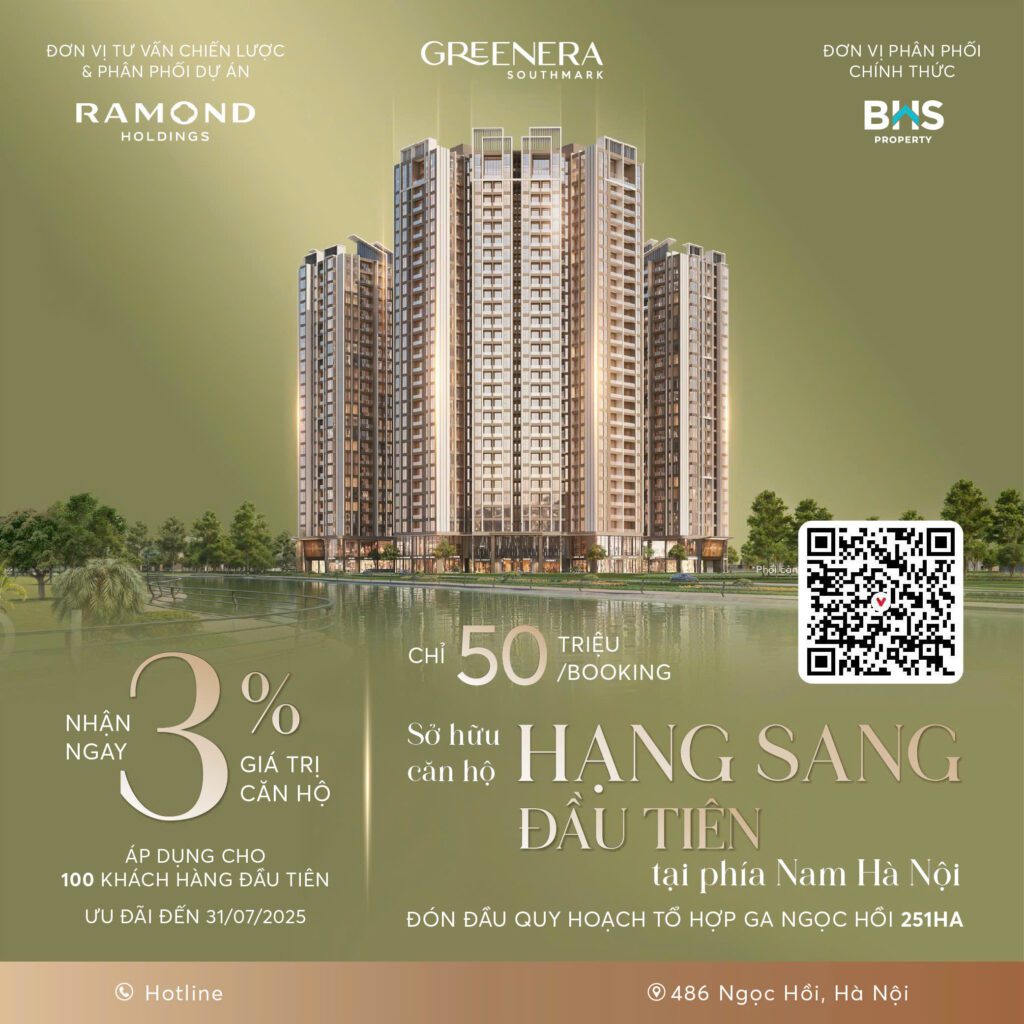 Chung cư Greenera Southmark Ngọc Hồi được xây dựng trên khu đất rộng 24.282m², gồm ba tòa nhà cao tầng từ 25 đến 30 tầng, kèm theo 3 tầng hầm, cung cấp 830 căn hộ cao cấp được thiết kế bài bản. Dự án được quy hoạch đồng bộ với hạ tầng hiện đại, mang đến không gian sống tiện nghi và thoải mái cho cư dân.